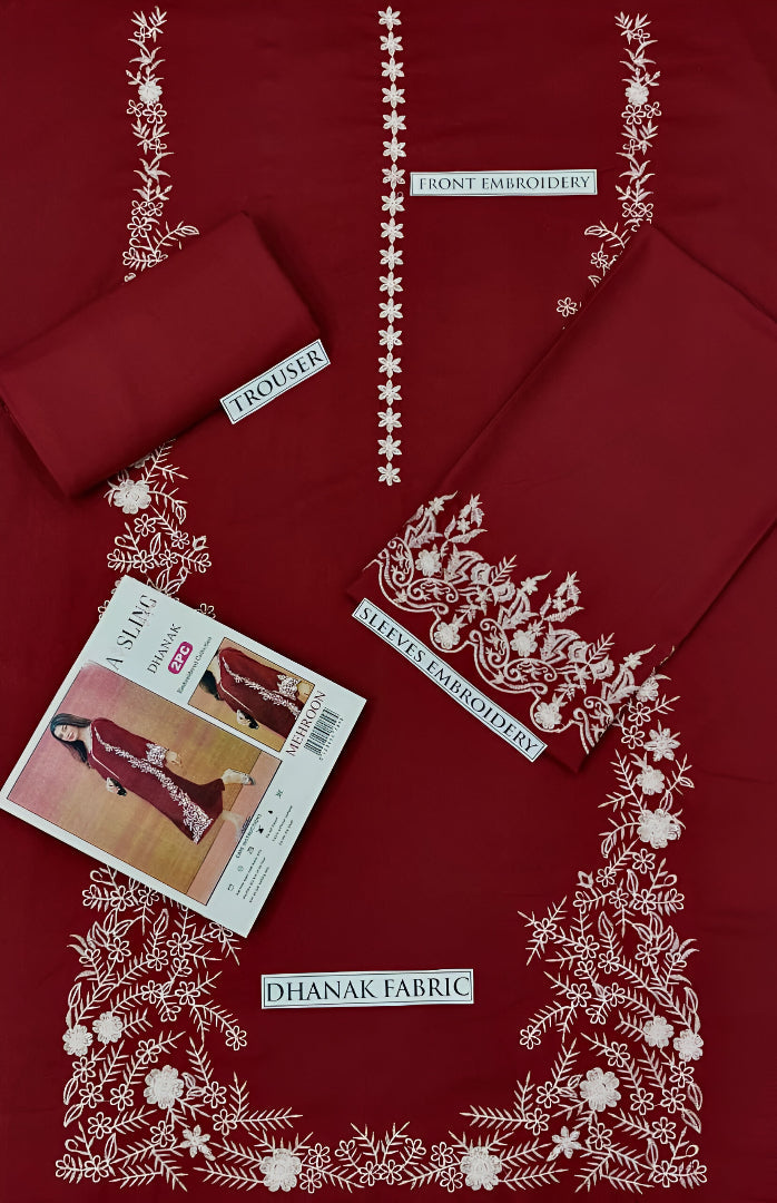 ASLING DHANAK 3PC EMBROIDERED | D # 1001 MEHROON