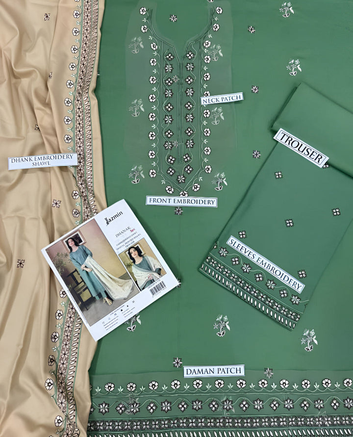 JAZMIN DHANAK 3PC EMBROIDERED | D # 102