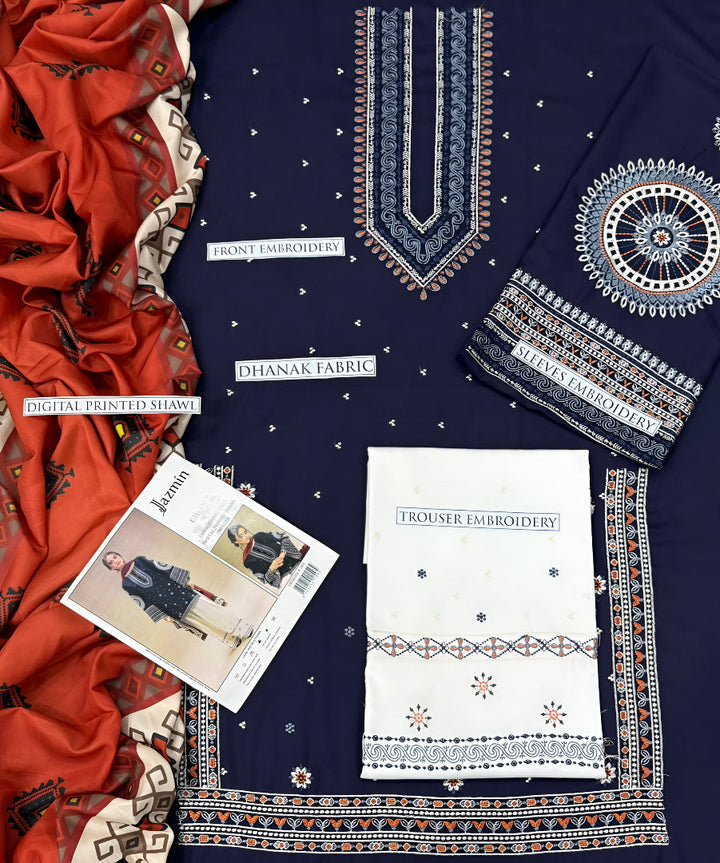 JAZMIN DHANAK 3PC EMBROIDERED | D # 203
